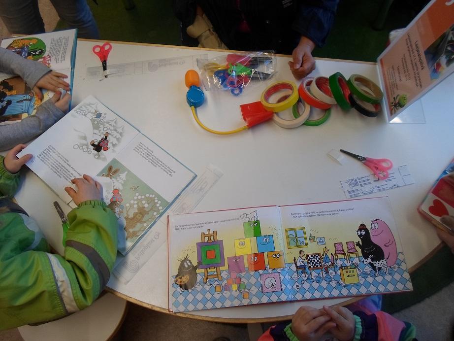Kirjaston kirjasairaalassa paikkailtiin puhki kuluneita kestosuosikkeja, mm. Barbapapaa, myyrä-kirjaa ja Pekka Töpöhäntää (Kuva: Laajasalon kirjasto)