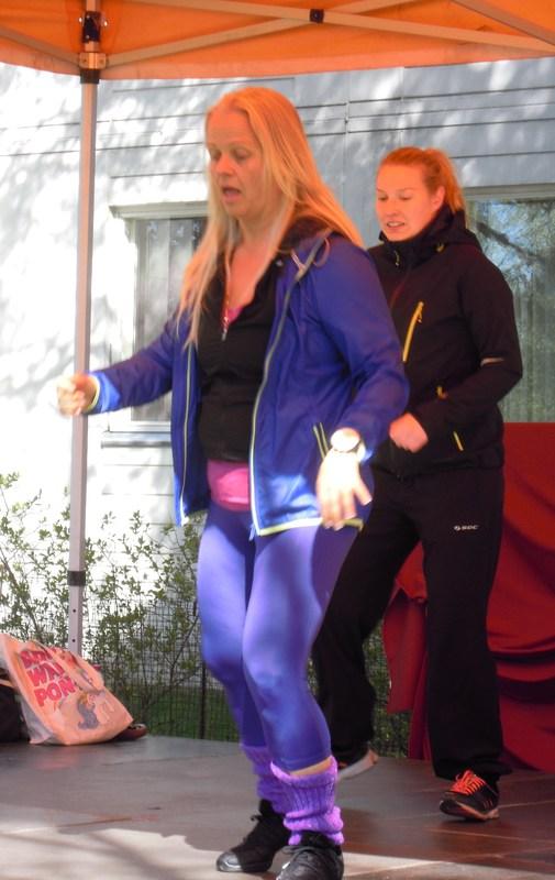Laajasalon Naisvoimistelijat vetivät lavalla vauhdikasta zumbaa ja yllyttivät yleisöä mukaan veivaamaan (Kuva: Riitta Brelih)