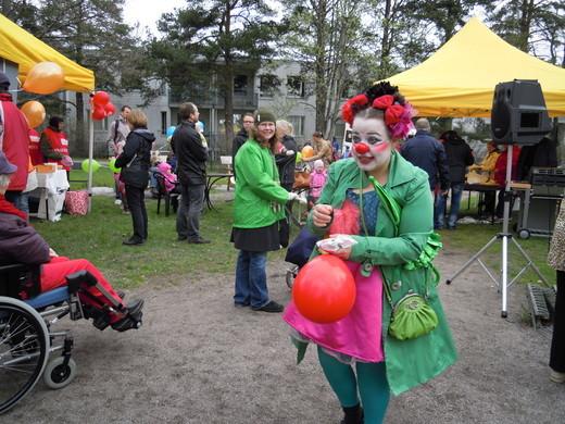 Klovni Lilli Pii tuli kertomaan lapsille, että kohta kannattaa tulla sisälle pitämään hauskaa. (Kuva: Riitta Brelih)