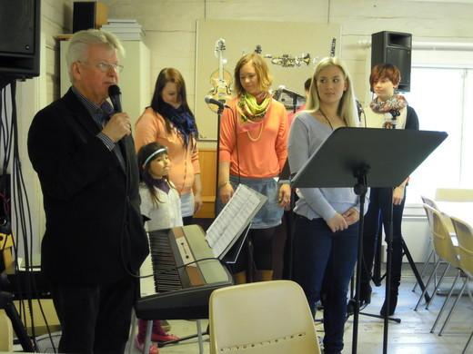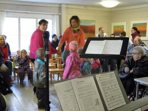 Laajasalon Opiston laulunopiskelijat esittivät mukavia kipaleita lapsille kapellimestari Antti Hyvärisen johdolla. (Kuva: Riitta Brelih)