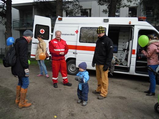 ... käydä tutustumassa Punaisen Ristin paikalle tuomaan ambulanssiin. (Kuva: Riitta Brelih)