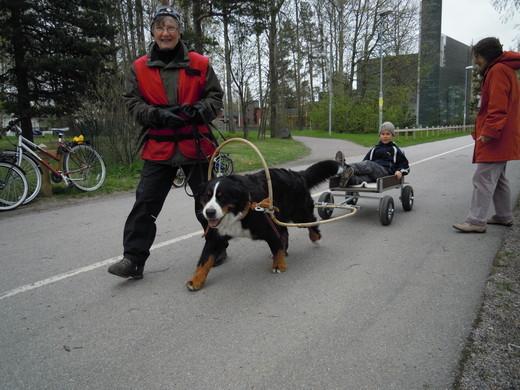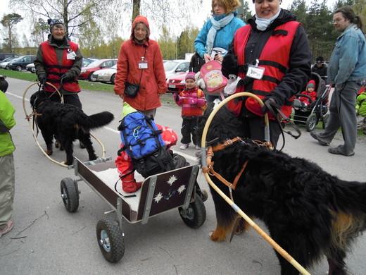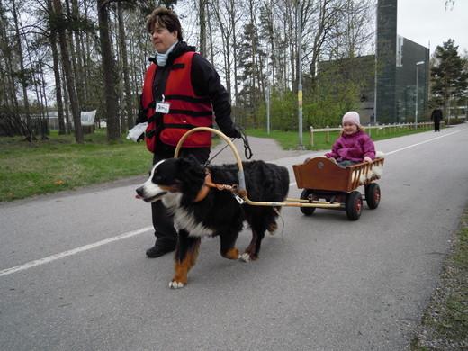 Samaan aikaan tuli pihalle vetoberni Donna kavereineen vetämään lapsia kärryillä. (Kuva: Branko Brelih)