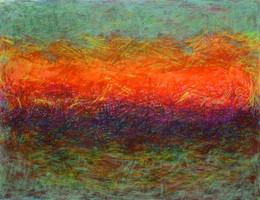 Laajasalo-päivän taiteilijan Tuula Aallon maalauksia oli Ylistalon seinillä. Tässä pastellimaalaus nimeltä "Pieni oranssi juhlii I". (Kuva: Tuula Aalto)