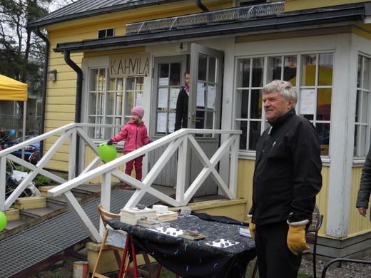 Perinteisenä Laajasalo-päivänä ei sääkään pettänyt perinteitä: +10 astetta, tuulta toistakymmentä metriä sekunnissa ja umpipilvistä, kun seuran puheenjohtaja toivotti väen tervetulleeksi tapahtumaan. (Kuva: Riitta Brelih)