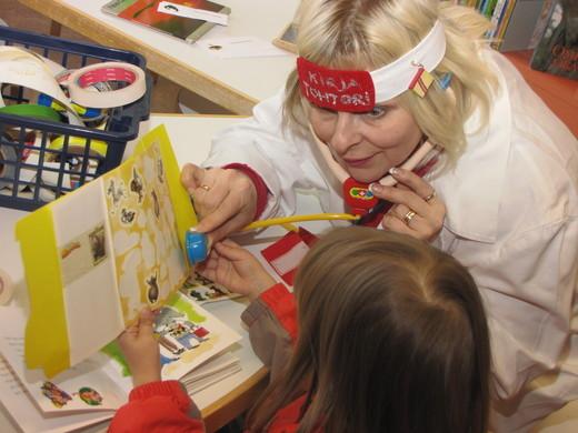 ...missä lapset pääsivät mm. kirjatohtorin vastaanotolle... (Kuva: Laajasalon kirjasto)