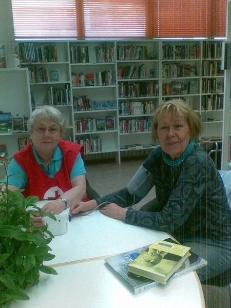 ...ja SPR tarjosi mahdollisuuden osallistua verenpaineen mittaukseen (Kuva: Laajasalon kirjasto).