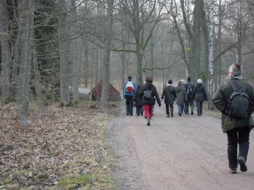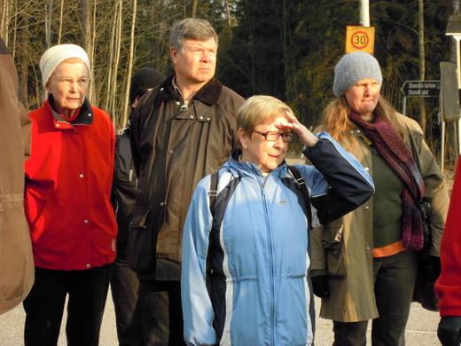 Matkan varrella pysähdyttiin kuuntelemaan laulurastasta ... (Kuva: Paula Lehtimäki)
