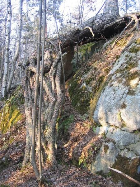 Männyn kasvattama juuri kalliolla Stansvikin suojelualueen eteläosissa (Kuva: Toni Amnell)